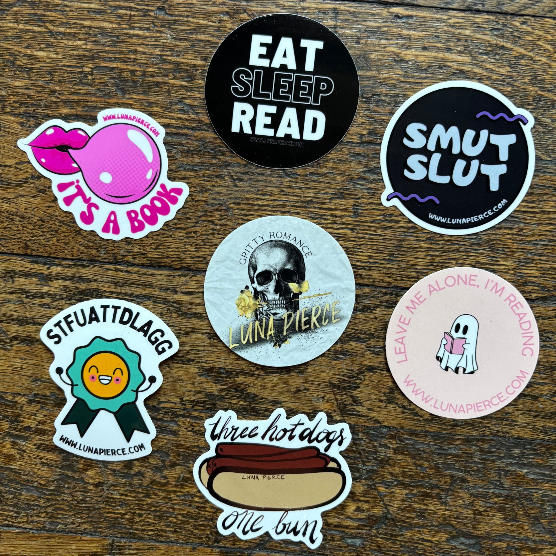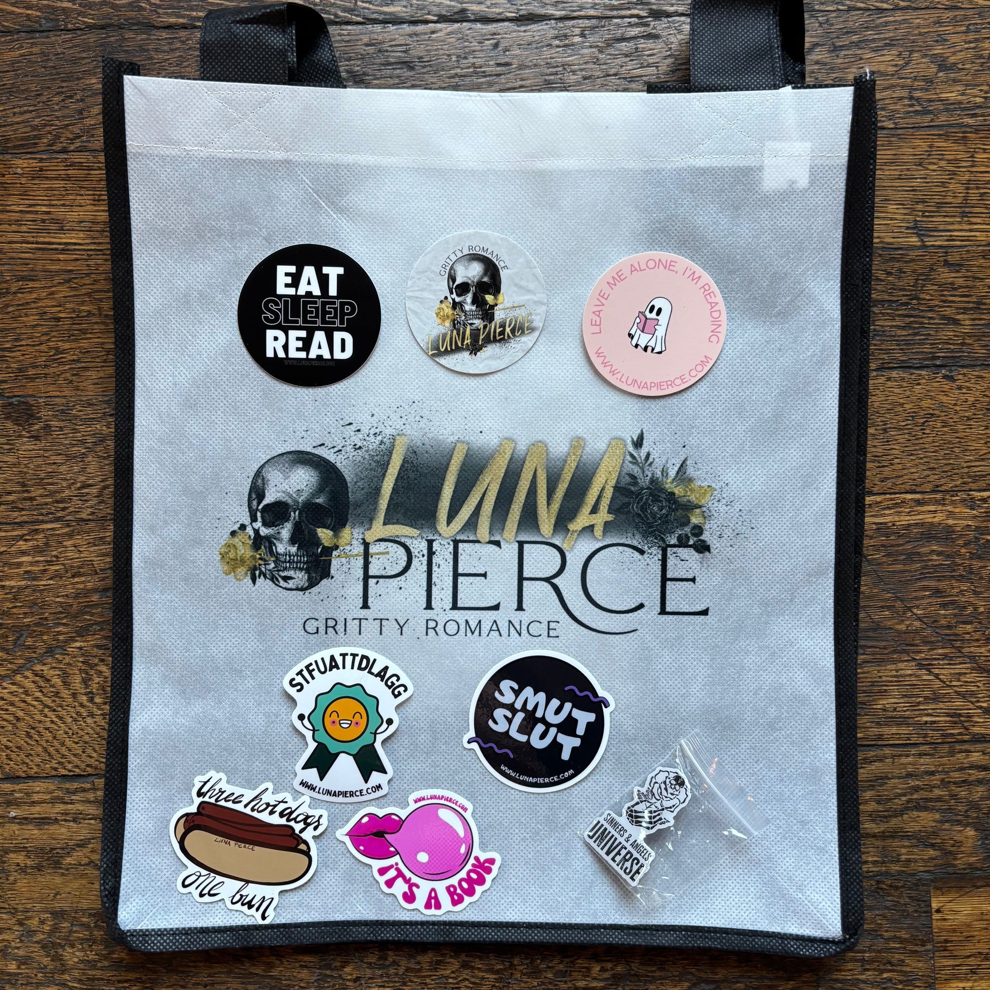 LUNA PIERCE TOTE BAG-PIN-STICKER PACK (SEVEN 2.5" stickers)