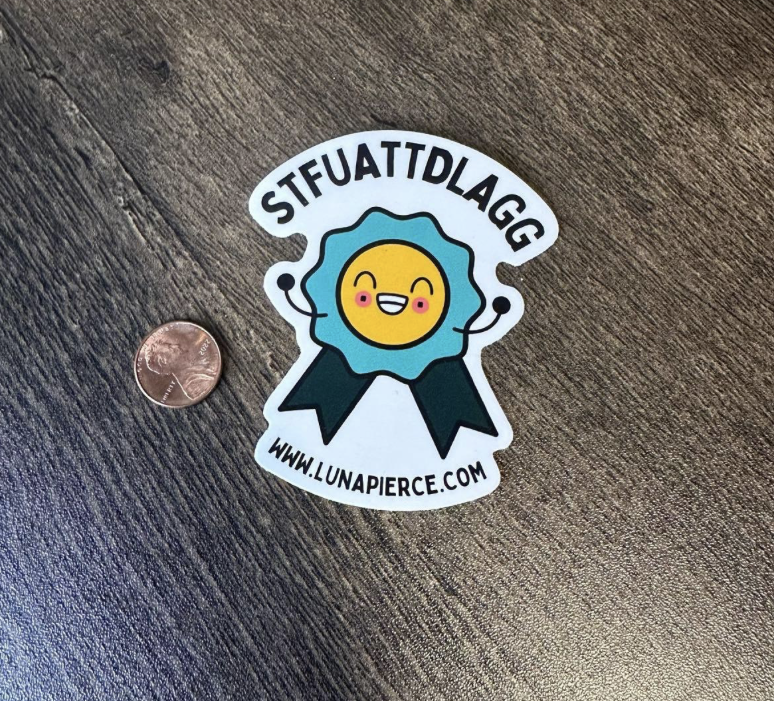 STFUATTDLAGG Luna Pierce 2.5” vinyl sticker. Penny not included (only in photo to show reference size).